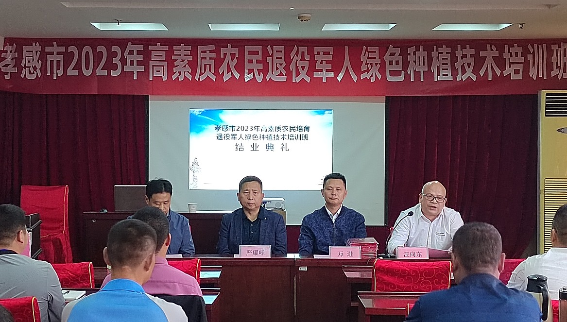 (通讯员:许智 张进兵)10月22日至29日,公司在融兴大酒店举办孝感市2023年度高素质农民教育培育退役军人绿色种植技术培训班,全市基层50名返乡就业创业退役军人参加了培训学习,孝感市退役军人事务局就业创业科、市农业农村局科教科等相关部门负责人出席开班式、结业式并讲话,学校相关学院负责同志参加开班式、结业式并致辞。周小俊等10名学员被评为优秀培训学员。