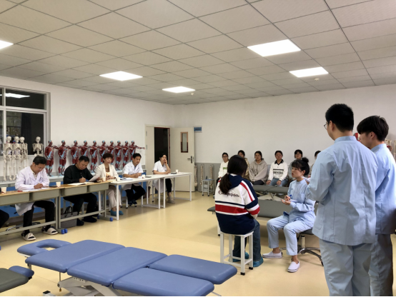 演练现场,参赛选手认真准备,严格按照比赛规则计时开始,全程模拟真实比赛场景,现场抽取演示病案,沉着冷静进行问诊、评定、治疗。专业教师、学院领导认真观看操作环节,细致观察记录。演示完毕,专家有针对性地提问,大家一一客观点评,对选手暴露出的问题提出合理化改进意见。临床经验丰富的张政老师指出,康复技能竞赛的训练工作,要注重与临床实际应用相结合,问诊条理的清晰性、评估重点的针对性、治疗操作的逻辑性,要始终贯穿备赛比赛的全过程,突出专业技术特色,同时也要对病人体现人文关怀。指导老师陈红平勉励员工,要以赛促学,学练并进,厚积薄发,展现团队风采。选手们一致表示,演示中小问题较多,要向老师虚心请教,把老师们语重心长的指正牢记心田,及时整改,全力以赴,刻苦训练,不仅要把任务完成,还要动脑筋把事情做好,以最佳的状态去迎接比赛,不辜负老师和学校的殷切期望。参加观摩的留校员工晏祖儿是大一新生,她感叹,这次观摩增长了见识,颠覆了以前对专业肤浅的想象,给了她全新的认知。没想到一个病案展示下来,有这么多的专业知识,以后她要好好学习,争取也能成为比赛选手中的一员。