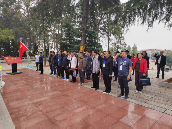 培训班一行瞻仰“赵家棚抗日烈士纪念碑”,并敬献花篮、缅怀英烈,表达深切的哀思和崇高敬意。烈士纪念碑前,全体党员同志佩戴党徽,庄严地举起右手,重温入党誓词,领悟党的初心,坚定理想信念。全体学员先后参观革命烈士纪念馆、怀念亭等地,重温革命先辈不畏艰难险阻、勇于献身的光荣历史。