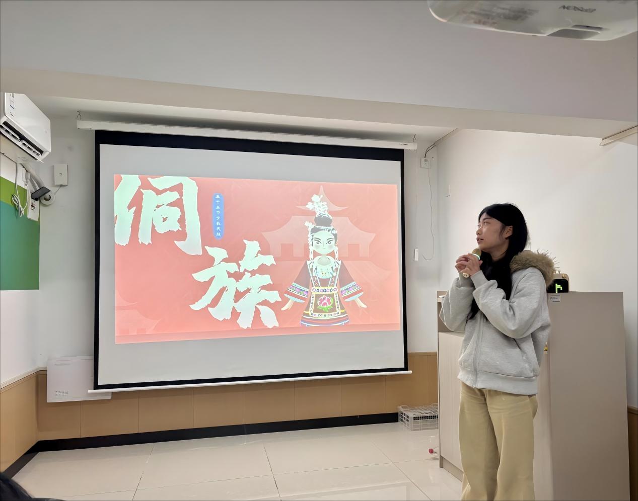 侗族员工张竟沅分享侗族团结互助、热情好客的文化传统,娓娓讲述侗族历史与习俗,展现侗族人民对自然的敬畏与对丰收的祈愿;壮族员工韦怡伶生动介绍壮族悠久的歌圩文化、独特的绣球铜鼓艺术,表达出各民族同学同心筑梦、共建家园的共同心声。在才艺展示环节,悠扬的侗族大歌与嘹亮的壮族山歌接连唱响,展现出各民族深厚的艺术底蕴与积极向上的精神风貌。